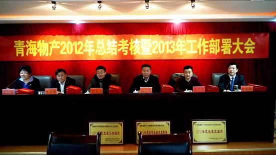 2013年1月25日,集團(tuán)總公司在集團(tuán)一號(hào)會(huì)議室召開"青海物產(chǎn)2012年總結(jié)考核暨2013年工作部署大會(huì)"。集團(tuán)領(lǐng)導(dǎo),集團(tuán)中層干部,受表彰的先進(jìn)個(gè)人、職工代表及退休干部代表參加會(huì)議,省國資委領(lǐng)導(dǎo)張守杰帶領(lǐng)考核小組蒞臨大會(huì)。